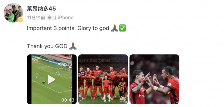 赛后,莱昂纳多在社媒发文写道:“重要的3分,荣耀归于上帝,感谢上帝!”