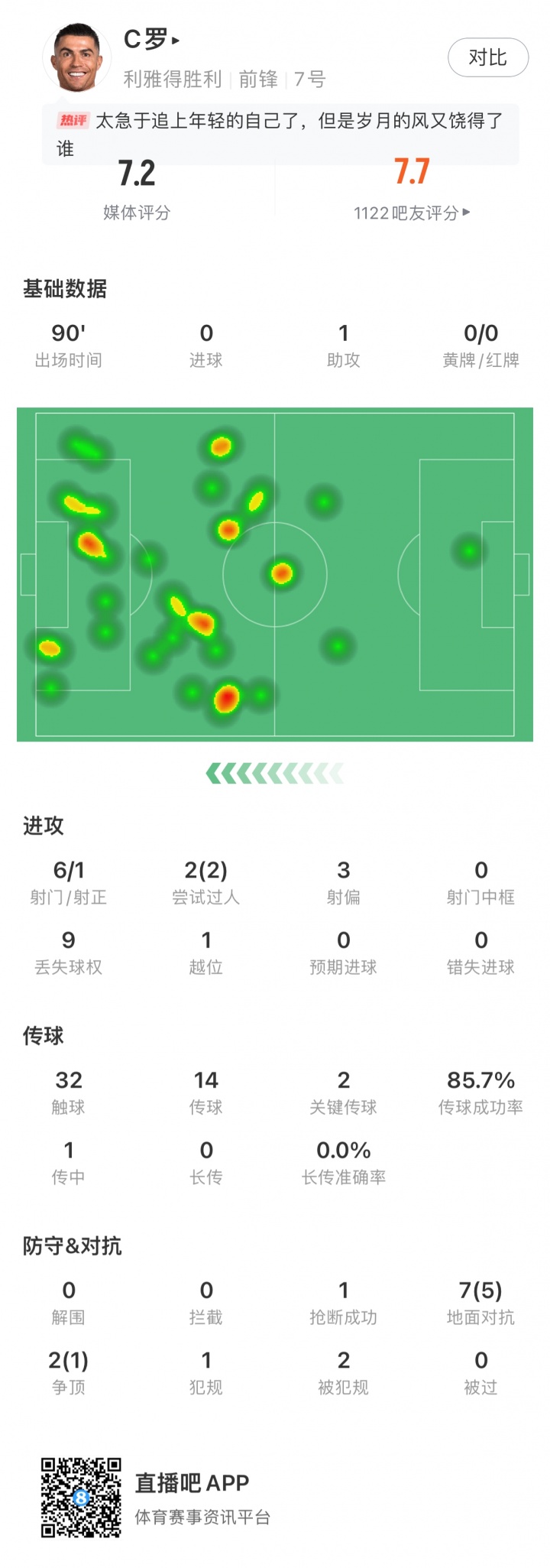 C罗全场数据如下